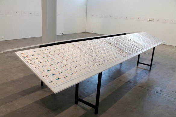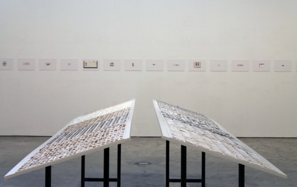 The use/appropriation of readymade images and objects and their transformation through the change of context is a primary element in Ioannou’s work. Their juxtaposition, in a way in which stamps, coins or botanical samples could be displayed, creates a narrative that demonstrates the process of collecting.