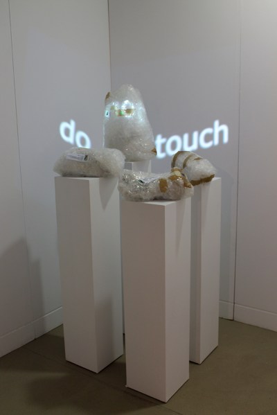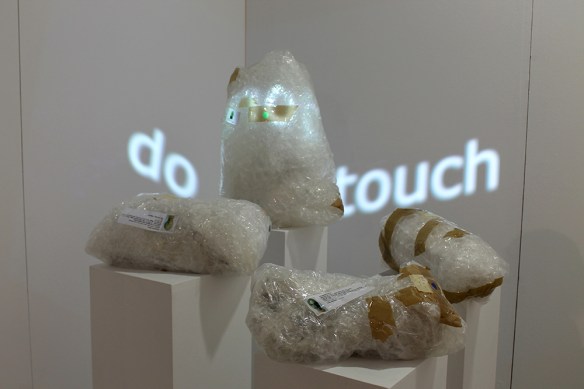 - Do Not Touch, 2019, wrapped artworks from the ACG Collection, sensor with sound, projection, pedestals