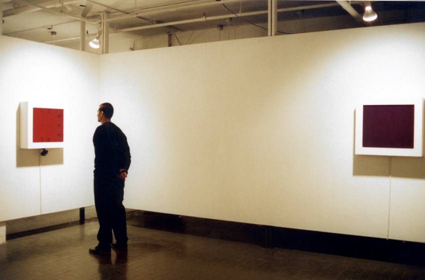 Four lightboxes operated by sensors (motion detectors), which are triggered when the viewer is in close proximity. The lights of each lightbox switch on for 30 seconds so that when they switch off the afterimage experience is very intense.
